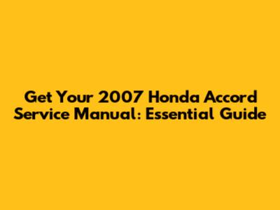 2007 Honda Accord Service Manual: Essential Guide