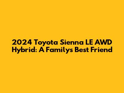 Hey everyone! Are you in the market for a new family vehicle? Let me tell you about the 2024 Toyota Sienna LE AWD Hybrid. This minivan isn't just about getting from point A to point B; it's about doing it in style, comfort, and with a seriously impressive fuel efficiency. We're talking about a vehicle that seamlessly blends practicality with a modern, eco-conscious approach. This guide will walk you through everything you need to know about the 2024 Sienna LE AWD Hybrid, from its key features and performance to its safety ratings and interior comforts. Buckle up, because we're about to dive deep into what makes this minivan a top contender in the family vehicle game.