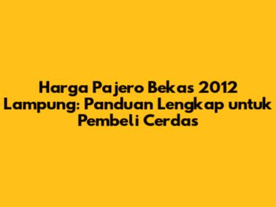 Membeli Pajero bekas 2012 di Lampung adalah keputusan yang tepat bagi kalian yang mencari SUV tangguh dan berkelas. Dengan memahami harga pasaran, faktor-faktor yang mempengaruhi harga, dan tips jitu memilih serta merawat mobil, kalian bisa mendapatkan Pajero bekas impian dengan harga yang sesuai. Jangan ragu untuk melakukan riset, pengecekan, dan negosiasi yang cerdas. Selamat berburu Pajero bekas!