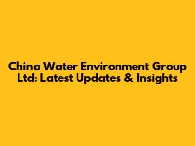China Water Environment Group: Latest Updates & Insights