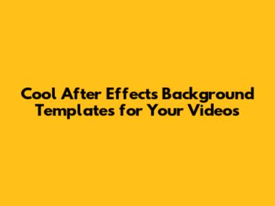 Cool After Effects Background Templates For Your Videos