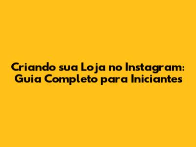 Criando Sua Loja No Instagram: Guia Completo Para Iniciantes