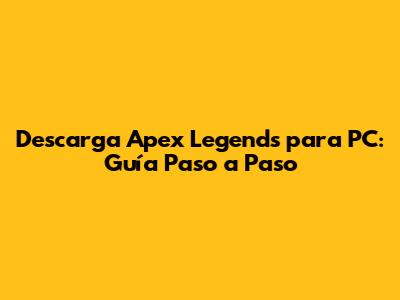 Guía Paso a Paso para Descargar e Instalar Apex Legends en PC