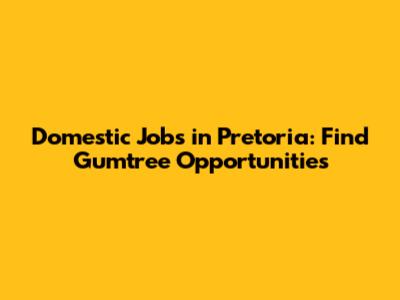 Domestic Jobs In Pretoria: Find Gumtree Opportunities
