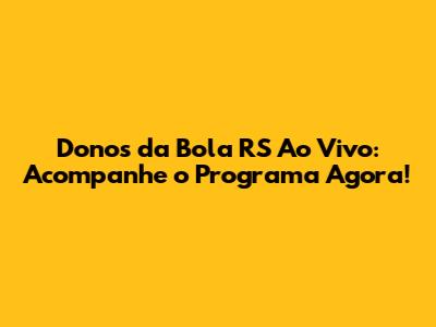Donos Da Bola RS Ao Vivo: Acompanhe O Programa Agora!