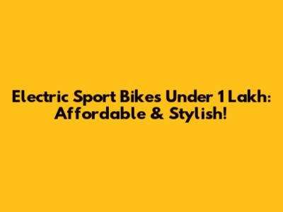 Electric Sport Bikes Under 1 Lakh: Affordable & Stylish!