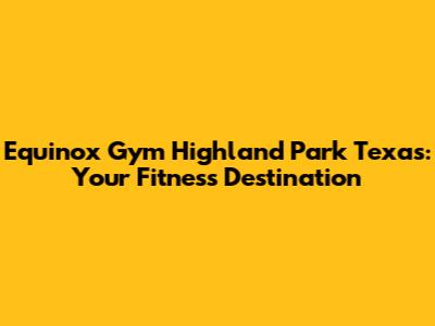 Equinox Gym Highland Park TX: Your Fitness Destination