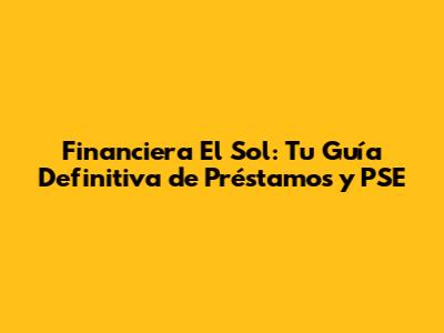 Financiera El Sol: Guía Completa De Préstamos Y PSE