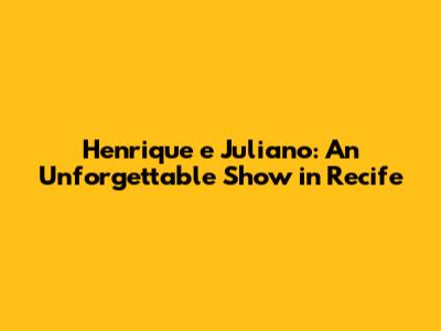 Hey music lovers! Get ready to dive deep into an amazing experience! We're talking about the sensational Henrique e Juliano show in Recife! This dynamic duo has been setting stages ablaze with their incredible talent and captivating performances. Their recent concert in Recife was nothing short of extraordinary, leaving fans buzzing with excitement and unforgettable memories. Let's delve into everything that made this show a must-see event, from the electrifying atmosphere to the incredible music that had everyone singing along.