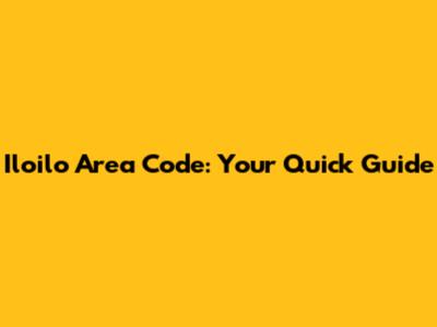 Iloilo Area Code: Your Quick Guide