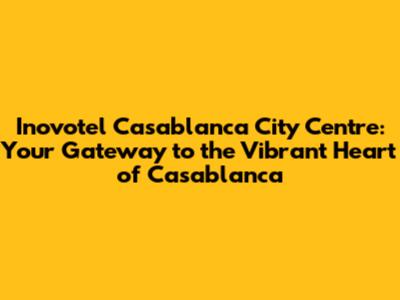 Hey there, fellow travelers! If you're planning a trip to the bustling city of Casablanca, Morocco, and you're looking for a hotel that puts you right in the middle of all the action, look no further than the Inovotel Casablanca City Centre. This hotel isn't just a place to rest your head; it's a launchpad for exploring the city's rich culture, vibrant markets, and stunning architecture. In this article, we'll dive deep into what makes the Inovotel Casablanca City Centre a fantastic choice for your stay, covering everything from its prime location to its comfortable amenities and nearby attractions. Get ready to discover why this hotel could be your perfect home away from home in Casablanca.