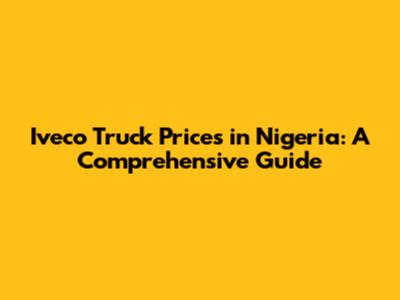 Iveco Truck Prices In Nigeria: A Comprehensive Guide