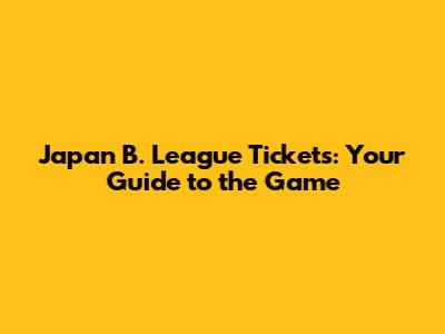 Getting Started with Japan B. League Tickets