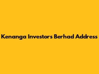 Official Address of Kenanga Investors Berhad