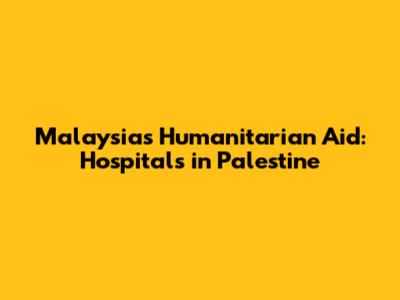 Malaysia's Humanitarian Aid: Hospitals In Palestine