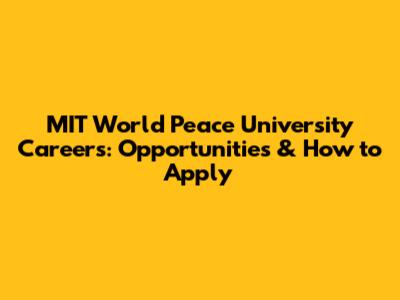 MIT-WPU Careers: Opportunities & How To Apply