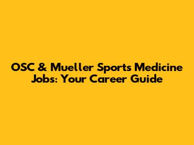 OSC & Mueller Sports Medicine Jobs: Your Career Guide