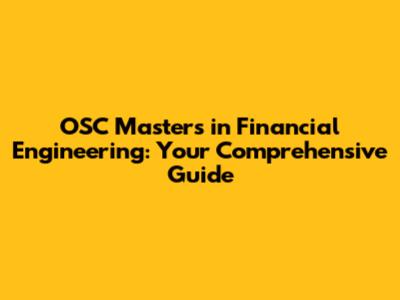 OSC Masters: Your Path In Financial Engineering