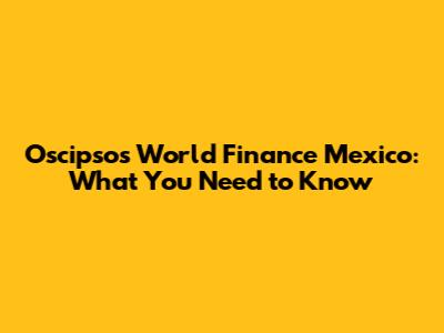 Oscipsos World Finance Mexico: What You Need To Know