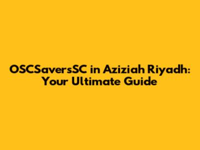 OSCSaversSC In Aziziah Riyadh: Your Ultimate Guide