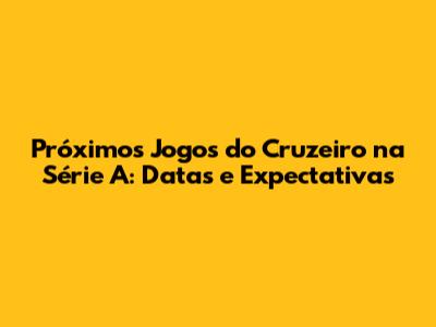Próximos Jogos Do Cruzeiro Na Série A: Datas E Expectativas