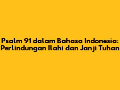 Psalm 91 dalam bahasa Indonesia adalah pasal Alkitab yang penuh dengan harapan dan janji perlindungan. Dengan memahami arti, makna, dan bagaimana menerapkannya dalam kehidupan sehari-hari, kita dapat mengalami perlindungan ilahi Tuhan secara nyata. Ingatlah bahwa Tuhan selalu bersama kita, siap untuk melindungi, memberkati, dan menyertai kita. Percayalah kepada-Nya, berdoalah, hiduplah dalam ketaatan, dan rangkul perlindungan-Nya dalam hidup Anda. Semoga Psalm 91 menjadi sumber kekuatan dan penghiburan bagi Anda dalam setiap situasi.