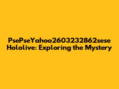 Now, let's tackle the seemingly random string of characters and words preceding "Hololive": PsePseYahoo2603232862sese. This part is much more puzzling. It appears to be an arbitrary combination of pseudo-words and numbers. The "Pse" might suggest something pseudo or fake, while "Yahoo" could refer to the search engine or perhaps some other context related to the Yahoo platform. The numbers 2603232862 are likely a timestamp or an identification code of some sort. And finally, "sese" could be another pseudo-word with no immediate meaning.