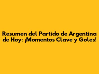 隆Y ahora, lo que todos esperaban! El resumen del partido de Argentina de hoy no estar铆a completo sin hablar de los goles y los momentos que marcaron la diferencia. El primer gol lleg贸 tras una jugada colectiva espectacular. Una pared en el borde del 谩rea, un pase milim茅trico y una definici贸n de crack que hizo estallar de alegr铆a a los hinchas. 隆Golazo! El equipo rival intent贸 reaccionar, pero la defensa argentina se cerr贸 bien, impidiendo cualquier intento de empate cercano. Sin embargo, el f煤tbol tiene estas cosas, y poco despu茅s, una jugada desafortunada en defensa, un rebote que cay贸 en los pies del delantero rival, termin贸 en el empate. Un golpe duro, pero la selecci贸n demostr贸 car谩cter. No bajaron los brazos y siguieron buscando el segundo. Y lleg贸. Un penal pol茅mico, pero que el 谩rbitro cobr贸, y un especialista se encarg贸 de convertirlo con una frialdad admirable. 隆Ventaja nuevamente para Argentina! El final del partido fue de infarto. El rival se volc贸 al ataque, buscando desesperadamente el empate, pero Argentina se defendi贸 con u帽as y dientes, con garra y coraz贸n. Hubo atajadas salvadoras, bloqueos cruciales y defensas providenciales. El pitazo final desat贸 la euforia. 隆Victoria para Argentina! Una victoria sufrida, pero merecida, que demuestra la fortaleza de este equipo. Los jugadores se abrazaban, cansados pero felices, sabiendo que dejaron todo en la cancha. La afici贸n celebr贸 el triunfo, coreando los nombres de sus 铆dolos. Estos momentos de gloria son los que alimentan la pasi贸n por el f煤tbol y nos hacen sentir orgullosos de nuestra selecci贸n. El an谩lisis post-partido seguramente arrojar谩 luces sobre los aspectos a mejorar, pero por ahora, toca disfrutar de este triunfo que suma puntos importantes en el camino. 隆Un partido para el recuerdo!