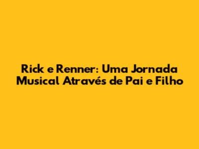 A trajetória de Rick e Renner no mundo da música sertaneja é notável. Com um estilo musical que misturava romantismo e modernidade, a dupla conquistou uma legião de admiradores em todo o país. Suas músicas, muitas vezes, abordavam temas universais como amor, família, e a busca por um lugar no mundo. "Pai e Filho", lançada em um dos álbuns de maior sucesso da dupla, rapidamente se tornou um hino para muitos, especialmente aqueles que se identificavam com a relação entre pais e filhos.