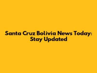 Santa Cruz Bolivia News Today: Stay Updated