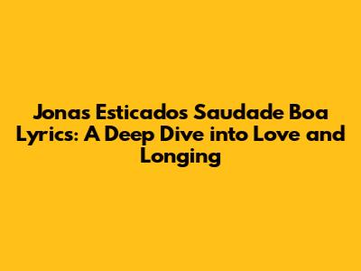 Hey guys! Today, we're diving deep into the soulful world of Jonas Esticado's 'Saudade Boa'. This song isn't just a catchy tune; it's a story of love, longing, and the sweet ache of missing someone. If you've ever experienced that bittersweet feeling of saudade – that Portuguese word for a deep emotional state of nostalgic or deeply melancholic longing for an absent something or someone that one loves – then this song will hit you right in the feels. Let's explore what makes the lyrics of 'Saudade Boa' so special and why they resonate with so many people.