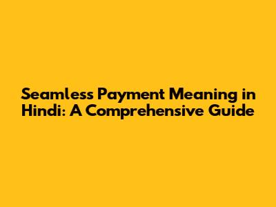 Seamless Payment Meaning In Hindi: A Comprehensive Guide