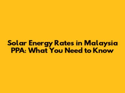 Solar Energy Rates In Malaysia PPA: What You Need To Know