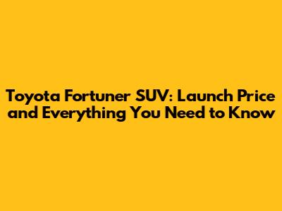 Toyota Fortuner SUV: Launch Price And Everything You Need To Know
