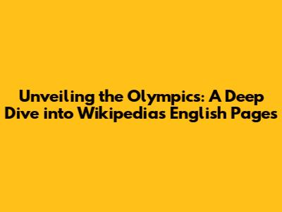 Unveiling The Olympics: A Deep Dive Into Wikipedia's English Pages