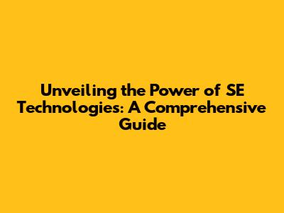 Unveiling The Power Of SE Technologies: A Comprehensive Guide