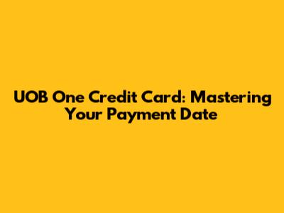 Hey guys! Let's dive into everything you need to know about your UOB One Credit Card payment date. Understanding this date is super important for managing your finances effectively, avoiding late fees, and keeping your credit score in tip-top shape. So, buckle up, and let's get started!