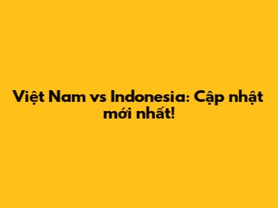 Việt Nam Vs Indonesia: Cập Nhật Mới Nhất!
