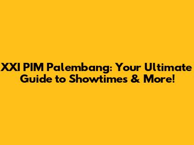 XXI PIM Palembang: Film Schedules, Showtimes & More!