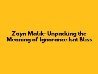 Zayn Malik: Unpacking The Meaning Of 'Ignorance Isn't Bliss'